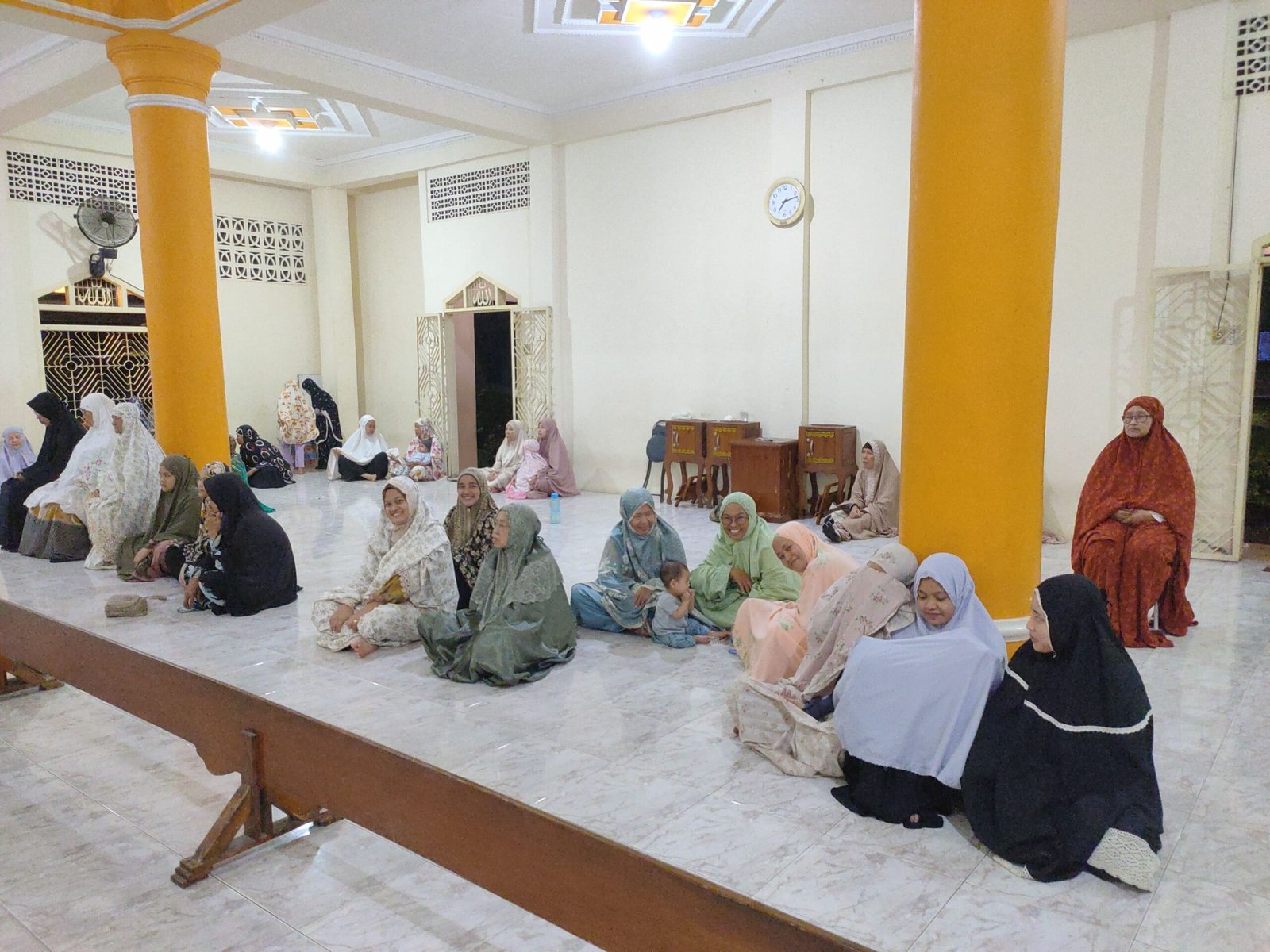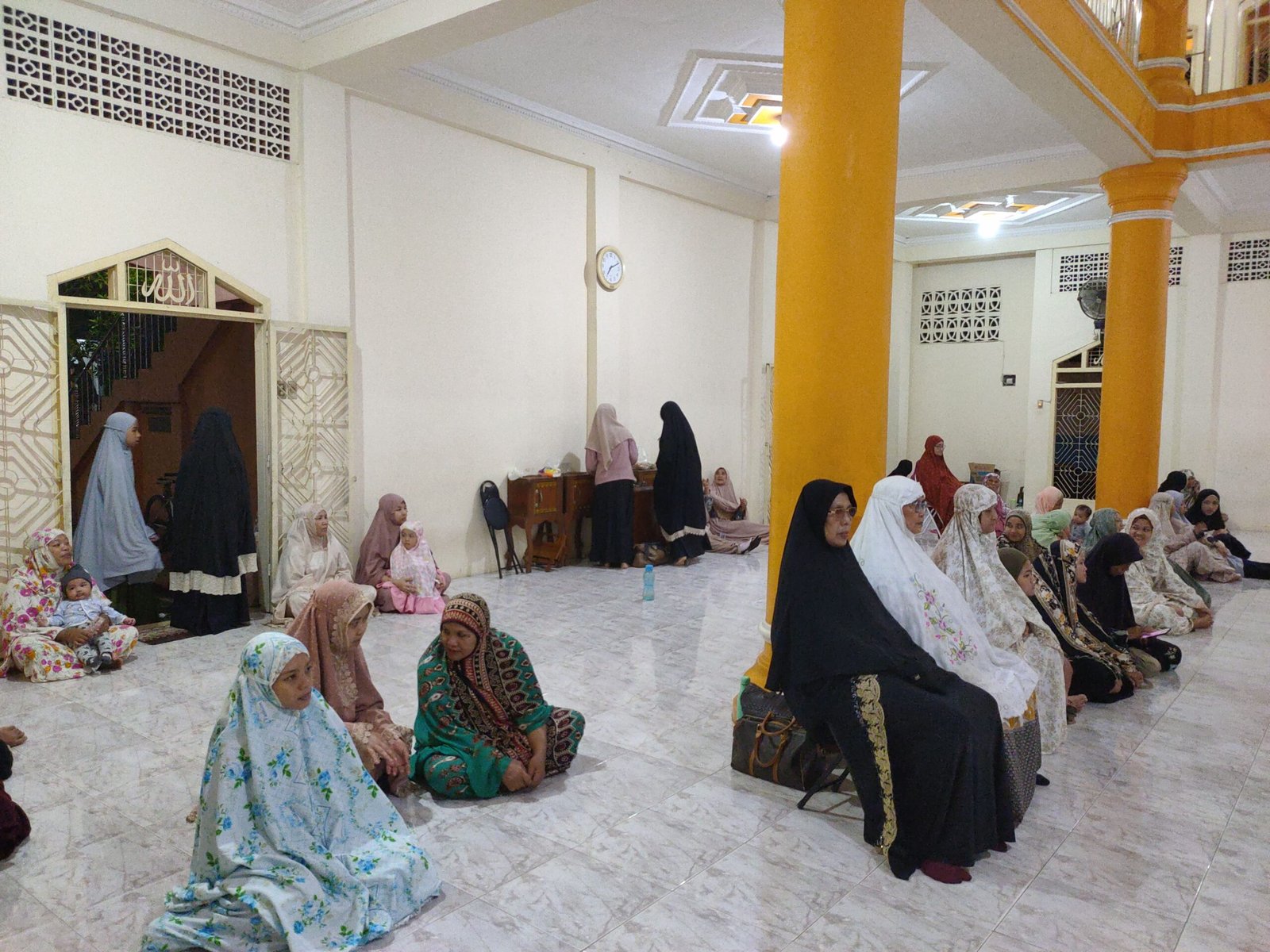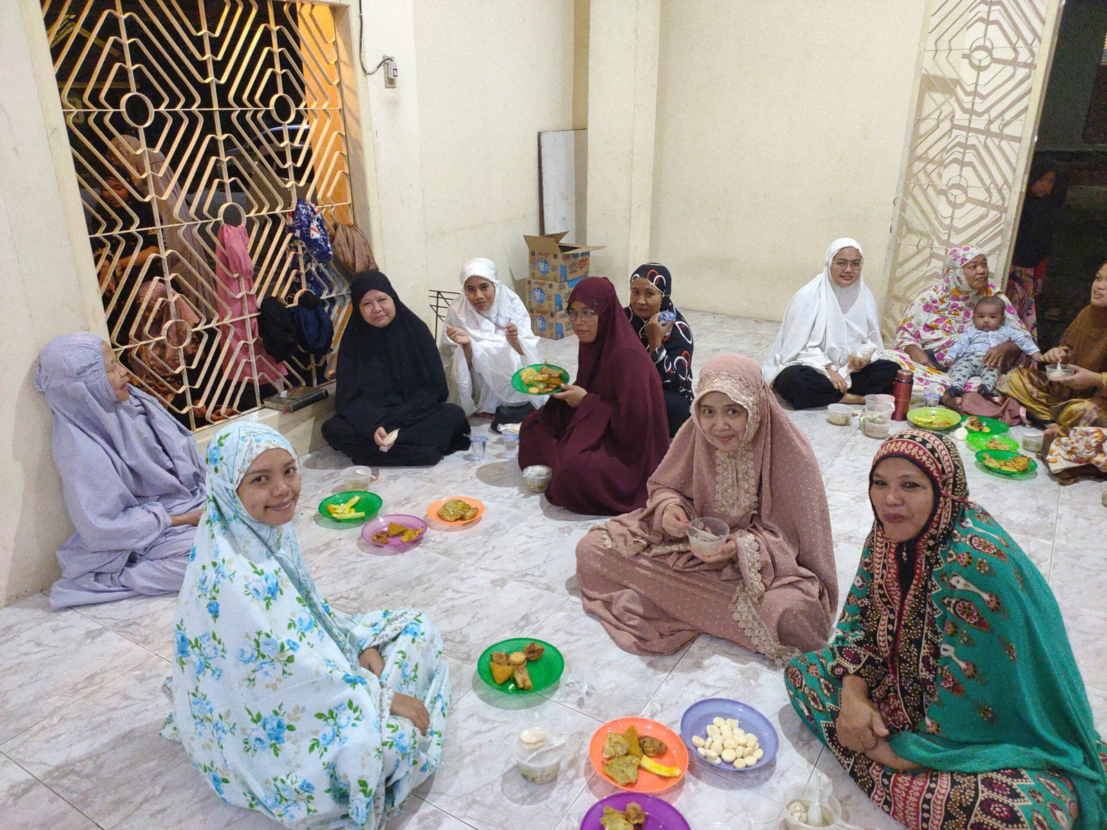 Suasana kebersamaan semakin terasa ketika rangkaian ibadah usai. Dengan penuh kehangatan, para muslimah dan santri YPD AKUIS Pusat menyiapkan aneka makanan ringan. Hidangan tersebut kemudian dibagikan dan disantap bersama oleh seluruh jama’ah yang hadir, menciptakan suasana silaturahmi yang erat di tengah malam yang mendung.